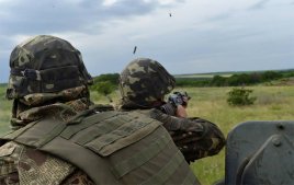В районе Урочище Волчье при поддержке 120-мм и 82-мм минометов противник совершил перемещение, используя рельеф местности, и в настоящее время ведет огонь из пулеметов Калашникова, АГС, СПГ по Желобку», — сообщил журналистам официальный представитель ведомства подполковник Андрей Марочко.