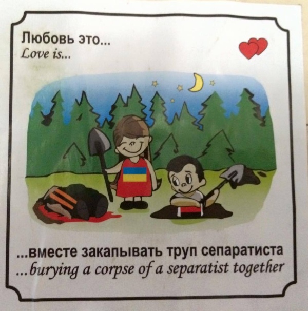 «Знаете, откуда я эту милую картинку про труп сепаратиста взял? Из Фейсбука некой Анастасии Леоновой», — пишет блогер Александр Дюков. Вот эта картинка: