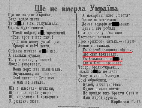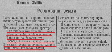 Чтоб никто не сомневался в коллаборационизме этой «автокефально-ОУНовской» газетенки, тут же приводится лизоблюдский стишок, прославляющий оккупантов: