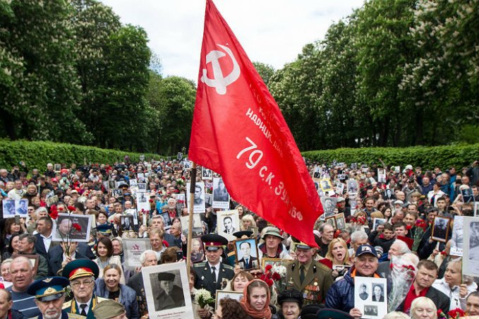 Самое страшное для киевского нацистского режима — это непонятные им люди захваченной страны. Пропаганда работает как часы, обливая дерьмом прошлое, издеваясь на людьми ложью, цинизмом, заражая ненавистью и мракобесием. Инакомыслящих давят политическими, уголовными и террористическими репрессиями. Запугивали не просто словами, а на фоне репрессивных судилищ, избиения неугодных. Современное Гестапо штампует стандартные обвинения в адрес политически неблагонадёжных за пост в соцсети, за надпись «СССР» на рюкзаке. И как будто соцопросы показывают нужные для киевских путчистов настроения в обществе. Но… Люди вышли на акцию «Бессмертный полк» с портретами своих родственников — бойцов Красной Армии и скандировали «Фашизм не пройдёт!» Они это заявляли в лицо жёлто-голубым дегенератам и бандитам, которые сегодня выполняют роль террористов на побегушках у государственных преступников.