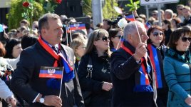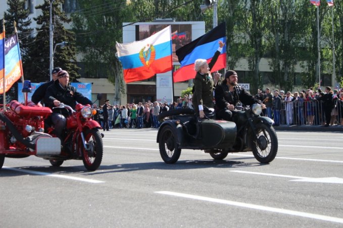 В праздничном шествии принимают участие и представители ныне оккупированных городов Донбасса – Славянска, Краматорска, Дружковки, Константиновки, Красного Лимана. В основном, это ополченцы с семьями, люди, которые не стали мириться с украинскими националистами и отправились на фронт, с оружием в руках защищать свой выбор.