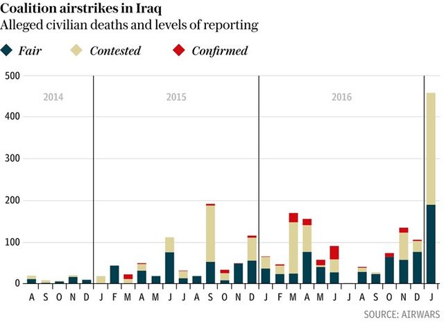 А вот статистика гражданских смертей в январе, когда боевые действия вокруг Мосула активизировались: