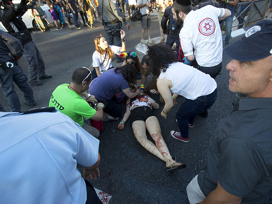 Неизвестный мужчина напал на шестерых участников шествия и нанес им многочисленные удары ножом. Сообщается, что двое пострадавших находятся в тяжелом состоянии. По словам свидетелей трагедии, набросившийся на геев мужчина был одет как ультраортодоксальный еврей.