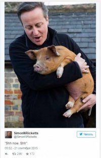 Например, сообщается, что для вступления в ряды избранных Кэмерон якобы согласился совершить половой акт с головой мертвой свиньи. Источник утверждает, что этому даже имеются доказательства в виде фотографии.