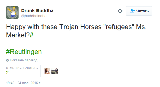 «Счастливы с этими «беженцами»-троянскими конями мисс Меркель?» @buddhainabar
