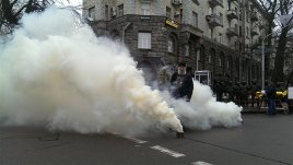 Майданных «активистов», объявивших голодовку в приёмной Кабмина и требующих импичмента нелегитимного президента Порошенко, сегодня «накормили» дымовыми шашками.