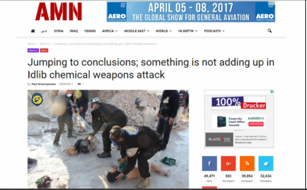 В это же время информация о применении сирийской армией в районе Хан-Шейхун «химического оружия» начала стремительно распространяться в зарубежных СМИ и социальных сетях.