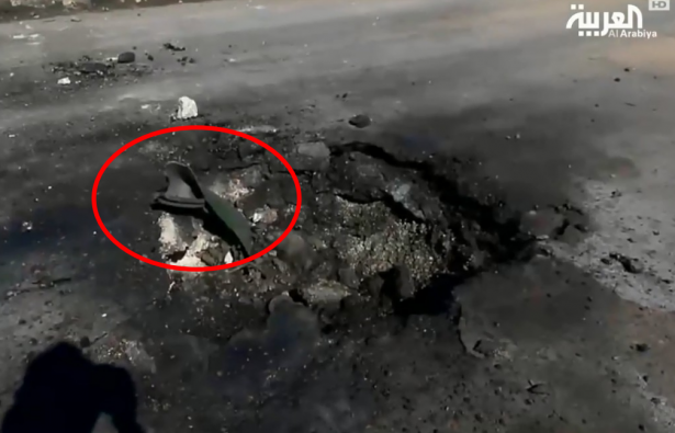 Кроме того, на всех материалах с различных ракурсов демонстрируется лишь одна небольшая воронка, которая никак не может считаться последствием авиаудара. Эксперты в области химического оружия указывают на то, что от применения зарина на асфальте не могла образоваться воронка, как это демонстрирует на видео журналист Hadi Abdallah. Химический заряд срабатывает над поверхностью земли, чтобы вызвать максимальный поражающий эффект, в ином случае действующее вещество сгорит, не причинив вреда окружающим.