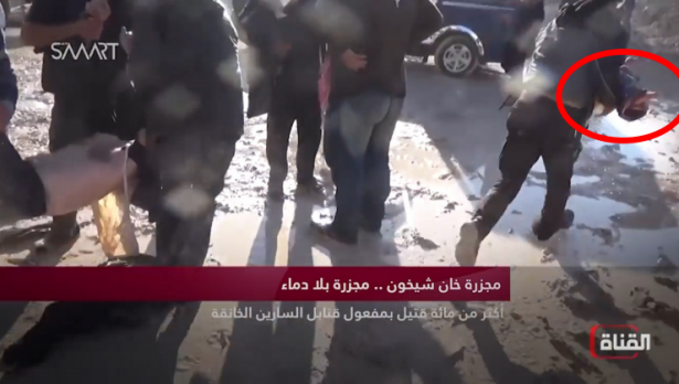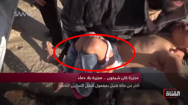 После 8.00 утра 4 апреля связанные с радикальными группировками фриланс-журналисты Муазз аль-Шами и Абдуллах аль-Гани, находящиеся в Идлибе, предоставили медиа-ресурсам сирийской оппозиции и телеканалам «Ориент-Ньюс» и «Аль-Джазира» подготовленные с участием так называемых «Белых касок» – гражданской обороны» видеосюжеты о «последствиях так называемого авиационного удара с использованием химического оружия» по окраине г. Хан-Шейхун, провинция Идлиб. При этом Муазз аль-Шами в своем сюжете конкретно назвал газ — «Зарин».