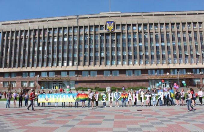 Сегодня, 6 мая, у здания под стенами Запорожской облгосадминистрации прошел «Радужный флешмоб». После завершения акции на участников страстно напала группа парней.