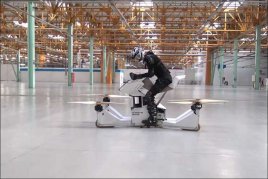 Байк рассчитан на одного или двух пассажиров общим весом до 300 килограммов, а также поддерживает дистанционное управление. Он может подниматься на пять метров над землей и пролететь до шести километров на скорости 70 километров в час.