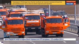 Глава российского государства не сомневается, что осенью 2018 года будет открыт проезд грузовиков по мосту через Керченский пролив. Через год начнет функционировать и железнодорожная часть 19-километрового мостового перехода, связавшего два российских побережья. Мост через Керченский пролив — самый протяженный в России. Полноценное автомобильное движение по нему для легкового транспорта и пассажирских автобусов будет открыто в 5 часов 30 минут 16 мая одновременно с двух берегов. Для движения будет открыто по две полосы в каждую сторону. Остановка на мосту запрещена, а максимальная разрешенная скорость движения составит 90 километров в час.