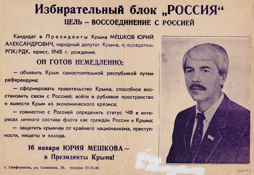 В 1990-е Юрий Мешков был незаконно свергнут властями Украины с поста президента Крыма, Киев силовым путем отменил Конституцию республики, предполагавшую конфедеративные отношения с украинским государством.