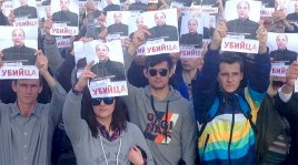 На акции был также замечен плакат «Порошенко покрывает убийц».