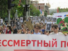 Наследники Победы — внуки и правнуки ветеранов ВОВ — в знак памяти о своих близких надели советскую форму, пилотки и белые платья. Многотысячная колонна растянулась по улицам столицы.