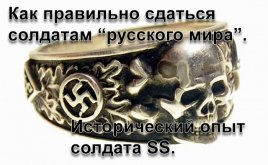 Жёлто-голубых рагулей, как известно, история ничему не учит. Однако мы решили, что для киевских карателей будет очень полезно ознакомится с мемуарами немецкого эсэсовца в той части, где он удачно сдался в плен солдатам русского мира. Поверьте, эсэсовцам это было очень трудно сделать, также, как и современным последователям украинской националистической мертвичины.