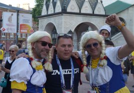 Так, Нижнем Новгороде, отмечает издание, вспоминают группу болельщиков из Стокгольма: бородатые мужички в париках с косичками и ярких сарафанах — а-ля Кончита Вурст — целый день «работали фотомоделями» на пешеходной Покровской улице города.
