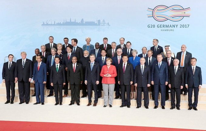 В Internet активно обсуждают коллективную фотографию участников саммита «Большой двадцатки», проходящего в Германии. На снимке Ангела Меркель стоит в центре – на правах хозяйки. Владимира Путина от Меркель отделяет китайский лидер, а рядом с российским президентом фотографируется турецкий коллега Эрдоган. А вот лидер США Дональд Трамп оказался на «задворках» — как, впрочем, и молодой французский президент Макрон.