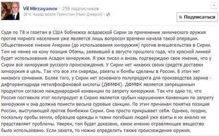 Позже, во уже в разгар террористической войны в Сирии дедушка принялся ванговать, что режим Асада вот-вот применит химическое оружие против своих противников. Не забыл дедушка мазнуть грязью и Россию: по его словам, прекурсоры и технологии для производства зарина в Сирию поставила именно Россия.