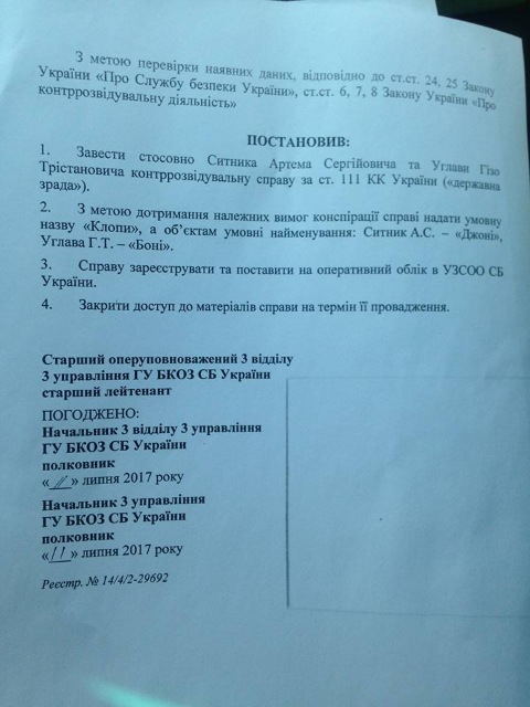 Кто эти люди, против которых возбужденно контрразведывательное дело? А вот персонализация главных действующих лиц тянет на веселую сенсацию. «Джонни» не кто иной, как глава Национального антикоррупционного бюро Артем Сытник, а «Бонни» – его первый заместитель: Гизо Углава, уроженец славного города Кутаиси. Старший уполномоченный третьего отдела СБУ Грушевский Т.П. установил: эти двое известных антикоррупционеров работают на американскую разведку. За деньги. Занавес, бурные аплодисменты, смех, вопли «жги еще»!