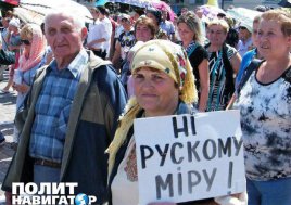 Религиозных песнопений никто не пел, зато можно было услышать «Червону калину» и пр. И, конечно же, периодически кричали традиционные лозунги укрофашистов «Слава Украине – героям слава!», «Слава нации – смерть ворогам!», «Украина превыше всего!». Один из участников крикнул «Слава Киевской Руси – Новороссия соси!», что вызвало смех других.