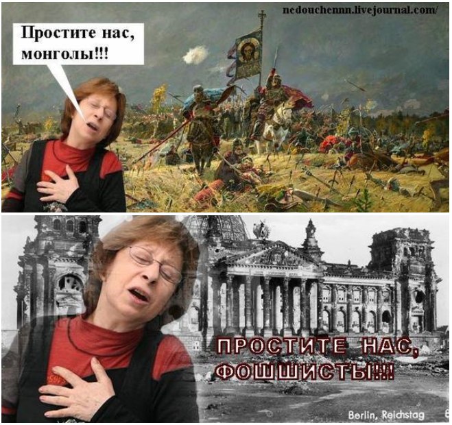 Интеллектуала оперативно расцитировали свободолюбивые СМИ. Ему наставили двадцать тысяч лайков единомышленники со всей планеты. Кто-то начал возражать, поясняя очевидное: «Можем повторить» вообще-то взято из надписи на Рейхстаге. То есть это не про «спим и видим, чтоб была война», а, наоборот, предупреждение: «даже не думайте мечтать о новой войне».