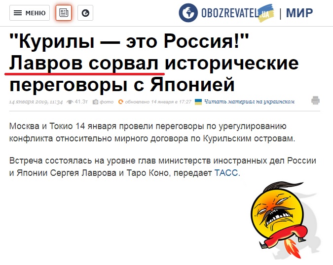 Реакция на результаты переговоров Лаврова с японцами црушных марионеток на Украине: