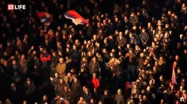 Весь центр полон людей. На площади больше десяти тысяч человек маршируют к храму Святого Саввы, чтобы послушать выступление российского президента Владимира Путина. Автобусы со всей страны по-прежнему прибывают. Все очень хорошо организовано.