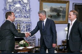 Виктор Медведчук предложил Медведеву вернуться к идее газотранспортного консорциума. Он напомнил, что меморандум об этом был подписан еще в 2002 году, но, «к сожалению, воз и ныне там». Кроме того, он подчеркнул, что, несмотря на падение экспорта, Россия остается главным торговым партнером Украины.